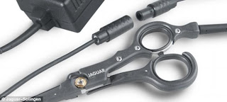 Op het eerste zicht ziet de Jaguar TC Thermocut eruit als eender welke andere kappersschaar. Het grote verschil is het zwarte bakje waaraan de schaar verbonden is. Hiermee wordt namelijk de temperatuur geregeld. Fijn haar wordt minder heet geknipt als dik, en hoe groter de schade, hoe warmer de knipbeurt.